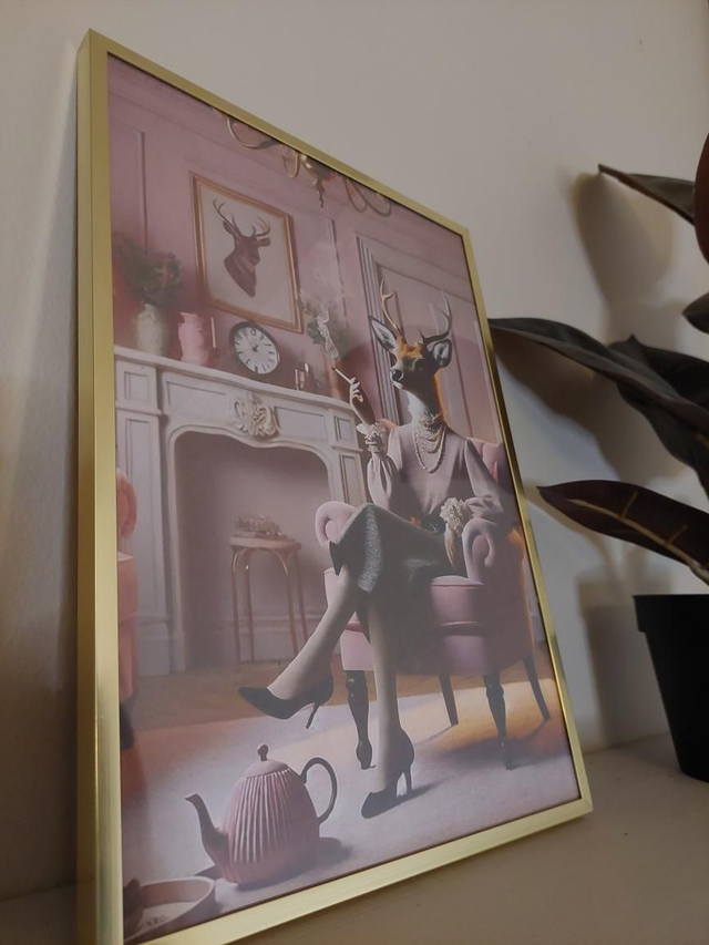 A4 koon peurarouva, kultainen kehys