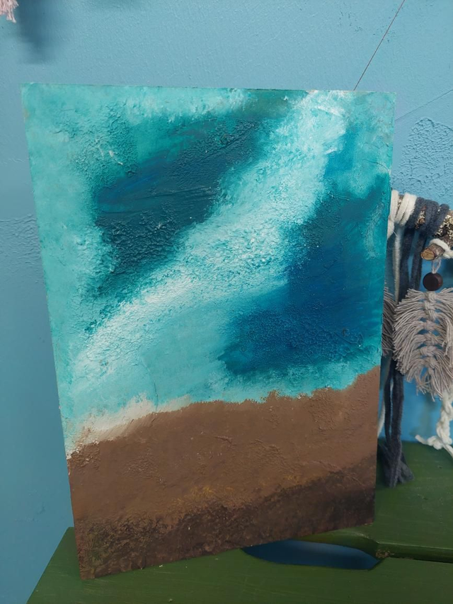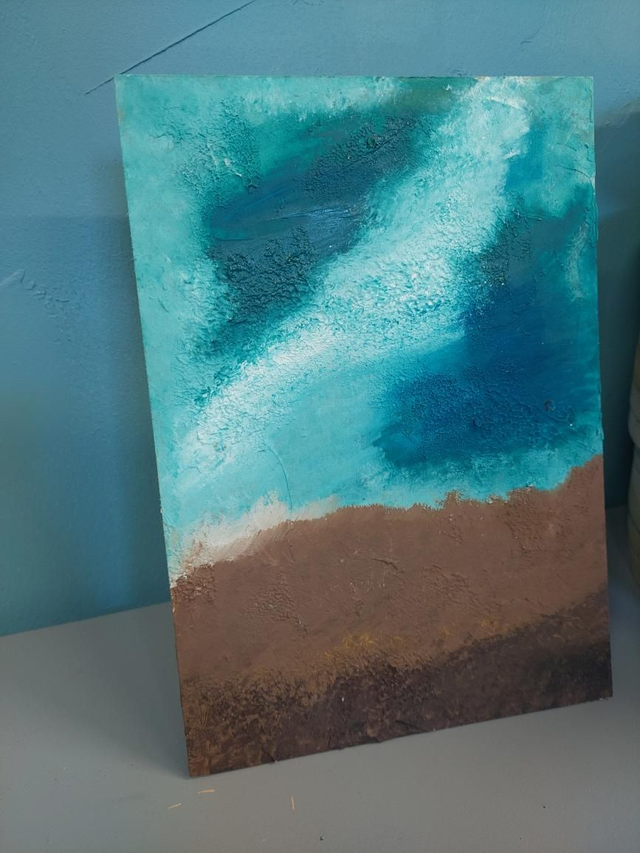 Merelle, sisustustaulu akryylimaaleilla sekatekniikka kartonkipohjalle.