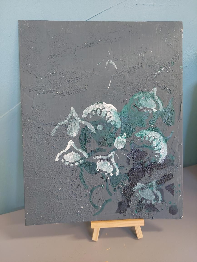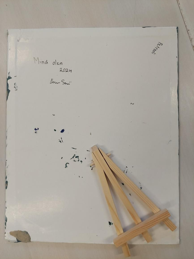 Akryylimaaleilla sekatekniikka canvas pohjalle, ohut pohja, mukaan taulupidike