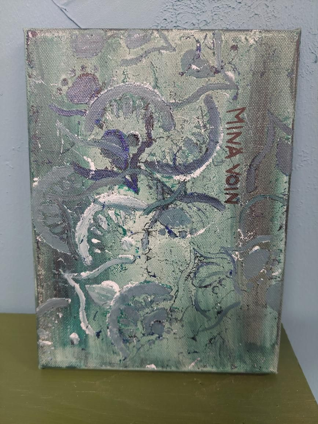 Minä voin, tekstitaulu sekatekniikka akryylimaaleilla canvas pohjalle