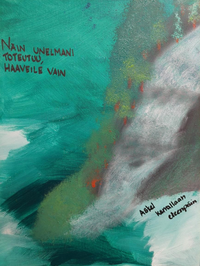 Sekatekniikka akryylimaaleilla canvas pohjalle