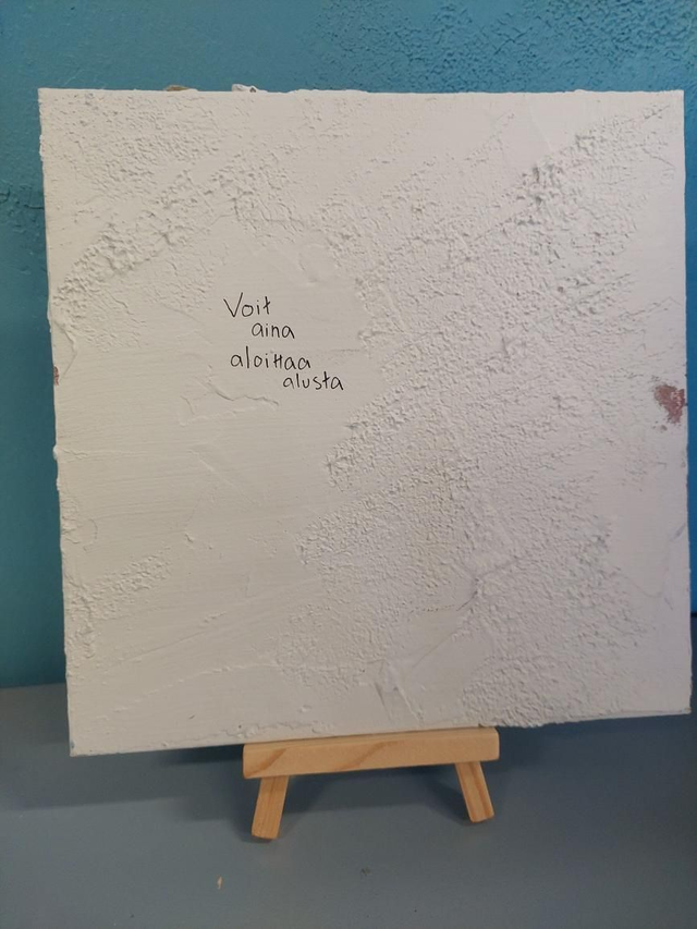 Tekstitaulu, struktuuritaulu. 20x20cm Ohut taulupohja, mukaan taulupidike. Sekatekniikka.
